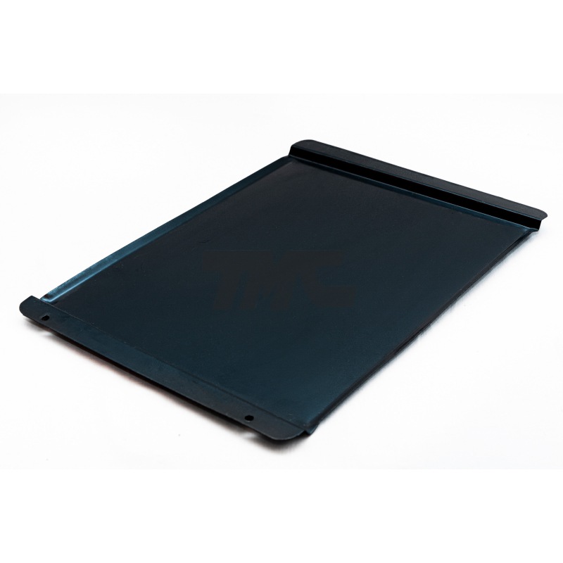 Nuestra BANDEJA PLANA ENLOZADO COMPLETO 44×32 CM está desarrollada para ofrecer rendimiento, durabilidad y practicidad en cocinas profesionales. Su diseño incorpora bordes plegados a 140° con un alto final de apenas 0,50 cm. Este reborde actúa como tope de seguridad, evitando que la mercadería se desplace o caiga fuera de la bandeja durante el horneado, sin comprometer la superficie útil.