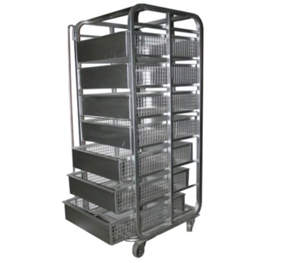 ¡Facilidad y rapidez en cada secado! Carro para horno rotativo con enganche inferior, con 6 cajones de 70x45x20 cm. Altura total: 173 cm.